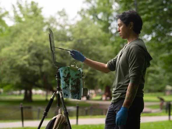 Jonathan Soriano grew up in New Jersey, USA born in 1988 to Filipino immigrants. While he developed an affinity for art in high school, his parents’ medical and veterinary influences led him to his first wonderful life adventures in biotechnology and drug discovery. After 13 years professionally focused on science, building immuno-oncology therapeutics through protein engineering and gene editing, in 2024 the stars aligned for the chance to pursue his formative passion for painting. Having learned that moderation is not his strong suit, Jonathan seized this opportunity to trade the pipette for the paintbrush.