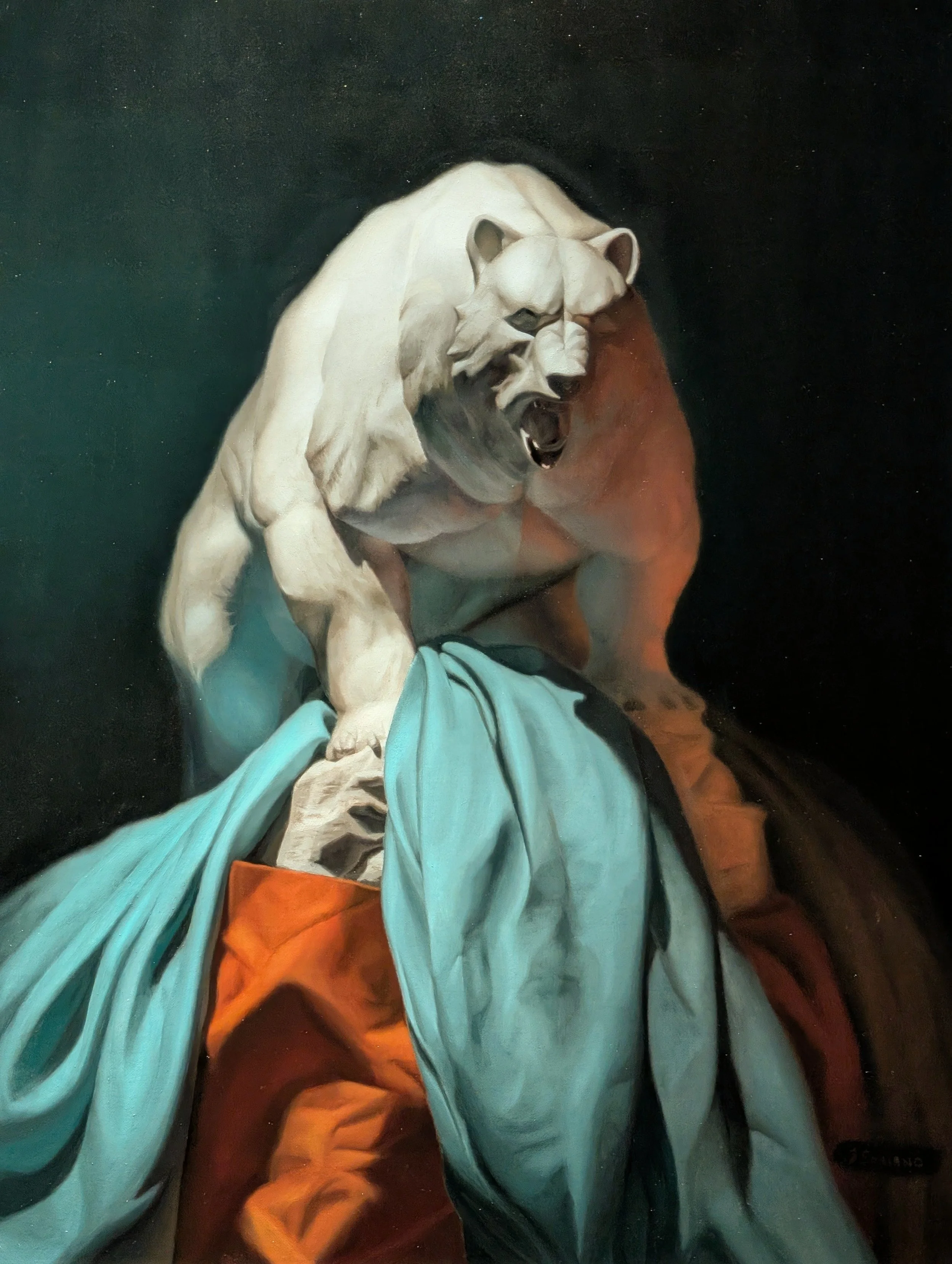 Vasari: Yellow Ochre, Raw Umber, Cadmium Red Light, Alizarin Crimson, Burnt Umber, Cobalt Bright Turquoise, Ultramarine Blue, Ivory Black
